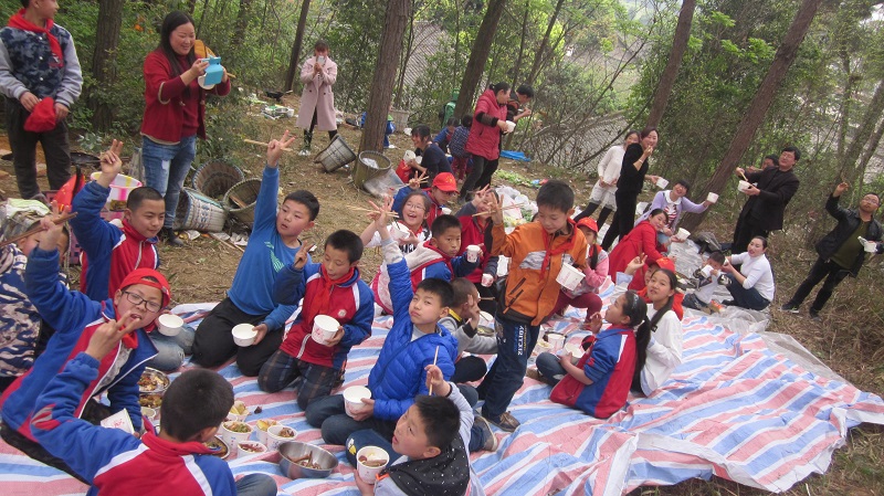 不知不觉中,我们安全抵达了目的地。一到目的地,我们欣喜地跑上前去,东瞧瞧,西看看。各班都找着了一块地,放下了身上的行囊。因为离学校规定的做饭时间还有近1个小时,因此各班都按照学校要求,分班活动。我们班由黄诗琴和许莎莎主持,在一块空地上开起了联欢会。在会上,我们都争先恐后地举手,上台展示自己的才艺。我们有的唱歌,有的讲故事,有的背古诗,还有的上去诵名言……节目真是丰富多彩呀!