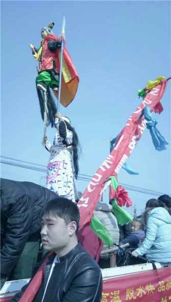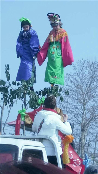 我们等了一会就开始了,我看见了有小孩站在上面,我目瞪口呆了。有男的、女的,好像还穿着古代的衣服,还化了妆,化的好像是京剧一样。他们站在上面都不知道害不害怕,车上的小孩有两个、有三个。有各种造型,有一个女孩外面还包了一朵花,一张一合的,我看见了,我们一直往前走,走着走着就停了下来,又把刚才看的重复了一遍第二遍的时候,我看见了骆驼,骆驼上还坐了小孩。