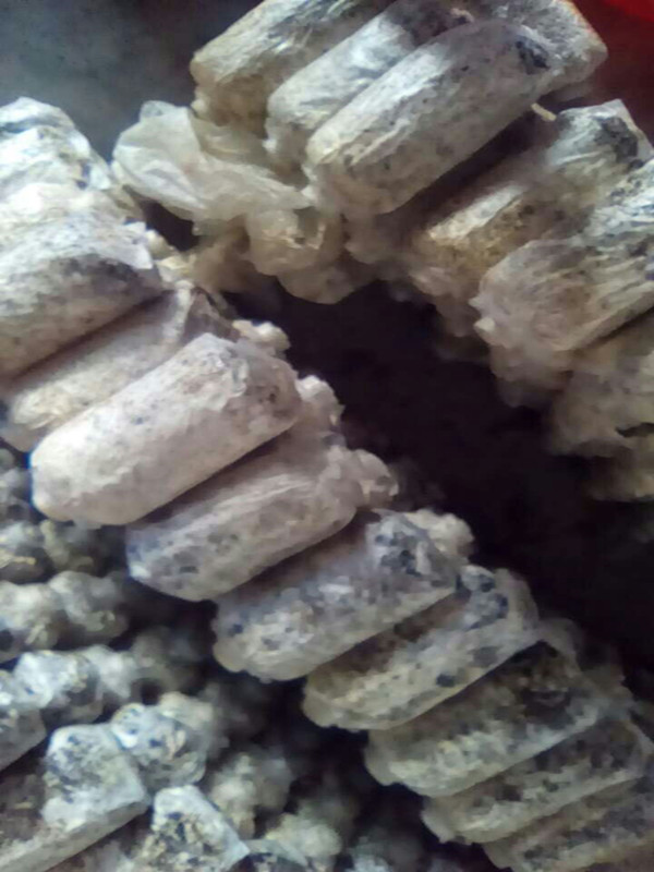在这之前,还要砍好树。等到天麻苞长好之后,与菌种放在一起,一袋菌种中大概要放五至六个花苞。听妈妈说,这天麻苞里的粉长大了就是天麻,可是我怎么也不明白,那么小的天麻苞怎么可以长成天麻呢?这下要把菌种放在提前挖好的坑里,再把树砍成一截一截放在上面,再放上菌枝,上面盖上一层土,这下就可以等到第三年来收获了。