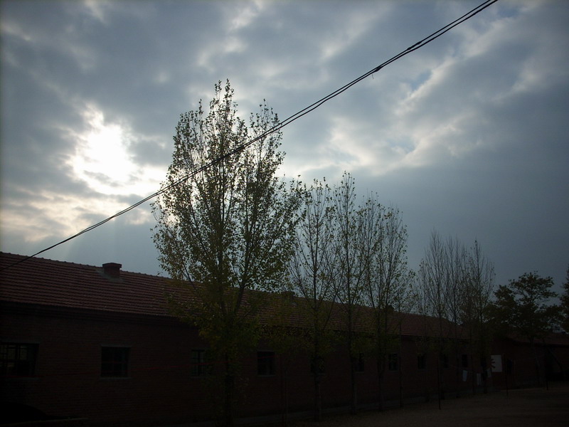 天,灰蒙蒙的,像一张巨大的网笼罩着整个大地,变得死一般沉寂。突然一道闪电划过天空,顿时整个村庄变得煞白,把网撕开了一个缸口, 倾盆大雨水之而来。眺望远处,山那边白茫茫一片,模模糊糊的,就连向日葵也由往日的笑脸迎人被打的抬不起头来,但它们依然挺直了腰杆与诺大的雨网作战。这时断了线的珠子早已变得凶神恶煞要吞噬整个世界……
