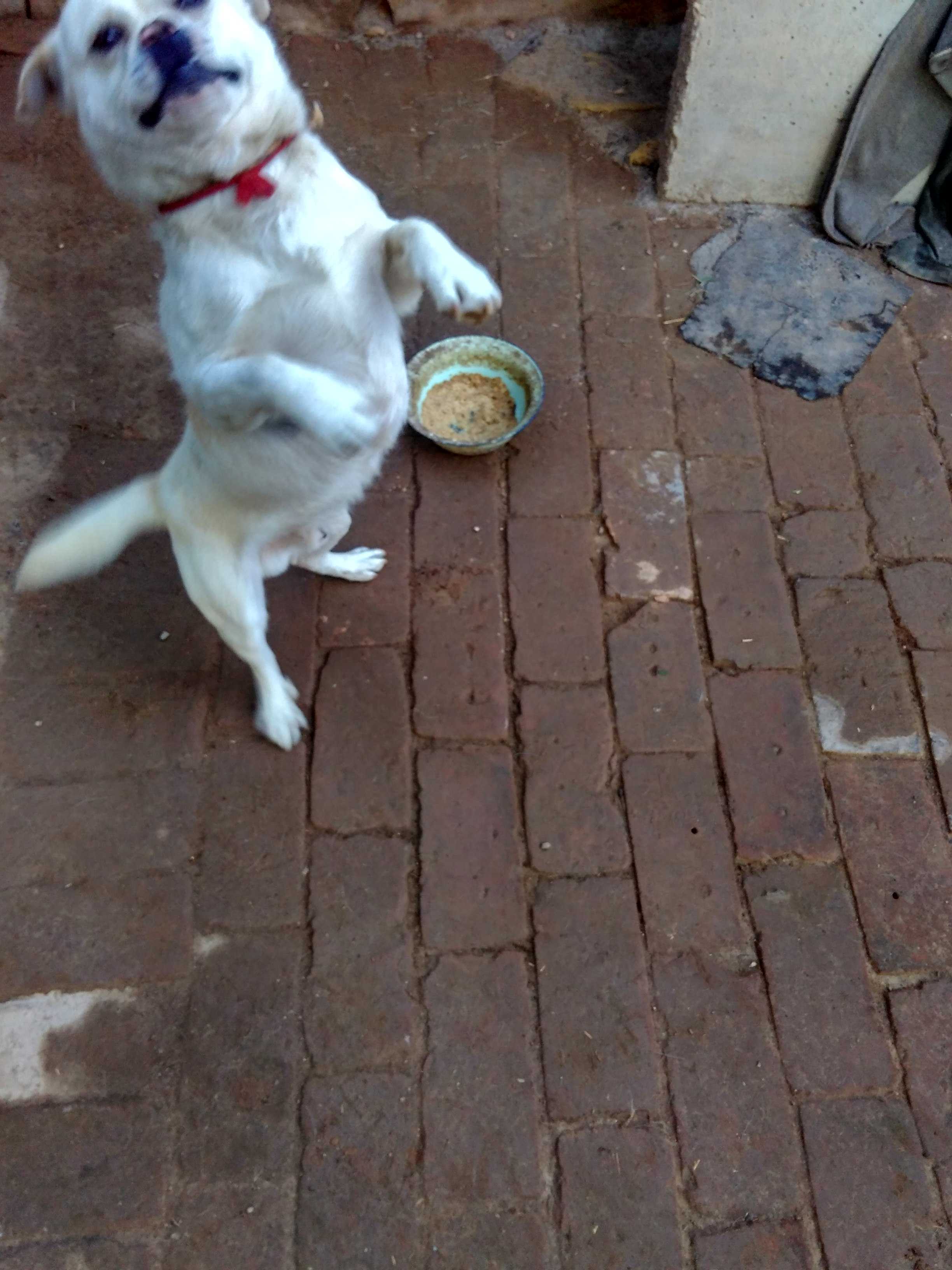 我家的狗狗是白色的,身材娇小。它很灵性,平时里躲在窝边呼呼大睡,可只要附近一有响动,它就警觉起来,如果是遇到陌生人,它就"汪汪"大叫起来,给主人通风报信。乡亲们本来就厚道,邻里之间相处很好,自从狗狗来到我们家,家中更是未遗失过什么。