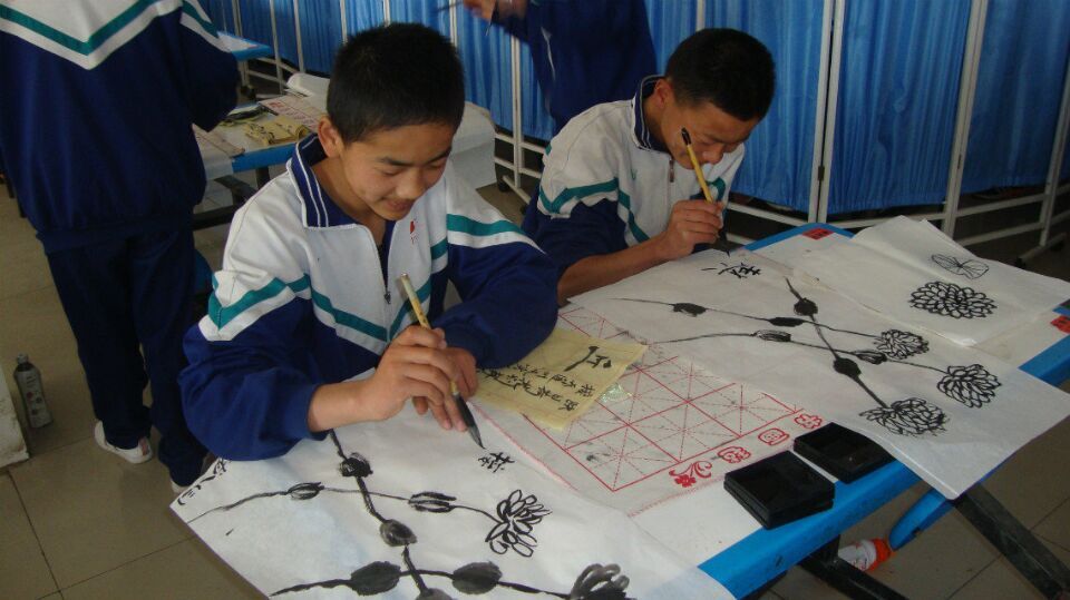 国画是中华文化的另外一座高峰,它不像西洋的油画那样崇尚色彩斑斓,靠亮丽取胜。它的色彩不多,只有水墨。但或浓或淡的墨色却同样能够表现出绘画者的用意和表达的意境,你说神奇不神奇。虽然同学们描绘的线条很简单,但他们仍然一丝不苟的画着。