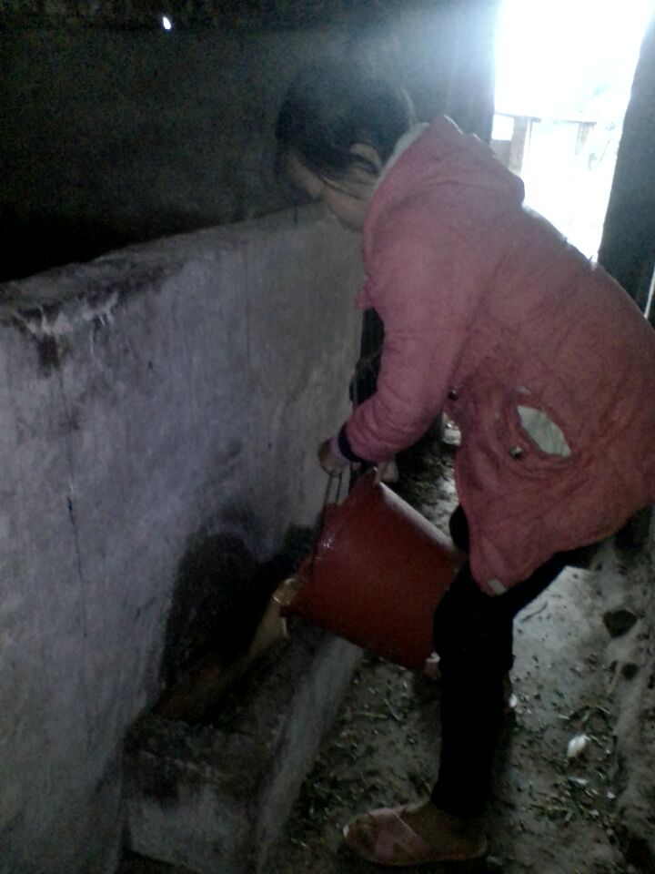 我拎来小塑料桶,把早上剩下的稀饭倒进了桶里,我舀了几勺麦皮倒进了桶里,然后我找来了一根棍子把饲料搅拌均匀,最后拎着桶向猪圈走去了。 因为平时我没有做过这么重的活儿,觉得这桶猪饲料太重了,我走一截就停下来休息一下,再走几步又停下来休息一下再走……就这样走走停停,不知停了多少次才走到猪圈旁边,我就要把饲料倒下去时,突然,那只"胖皇帝"跑了过来,(因为猪猪们太饿了)我赶紧把它赶开,差一点就要把饲料倒在地上了。我赶快把饲料桶子拎起来,刚要把饲料倒下去,"胖皇帝"又跑了过来,"胖皇帝"这次死死盯住了塑料桶,冲过来,哎呀!溅了我一身,心想我得想个办法引开它,我把剩下的饲料左晃晃,右晃晃,趁着胖皇帝"不注意时赶紧把饲料端端正正地倒在了它们的"碗"里。哈哈!这喂猪还要考智力啊!也许是它们太饿了吧,看看它们大口大口地吃着饲料,我的心理真有成就感。