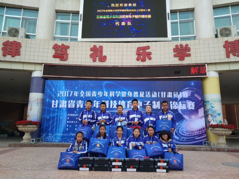 深秋的一个星期天早晨,天气还算晴朗。天上的明月逐渐被日光所隐去,有一种海日生残夜的壮丽景观,在这个时候我们一行12人乘车前往兰州市华侨实验学校,代表兰州市第69中学参加2017年全国青少年科学健身普及活动(甘肃站)科技体育电子制作锦标赛。 一路上并不是欢歌笑语,也不是只言片语,而是同学们认真记忆电路简图的低语声,更给人一种压力山大的感觉。 我们怀着无比激动又紧张的心情步入赛场,一进入赛场,我就被眼前的景象所震撼了:庄严的氛围、正襟危坐的裁判员、偌大的会场……