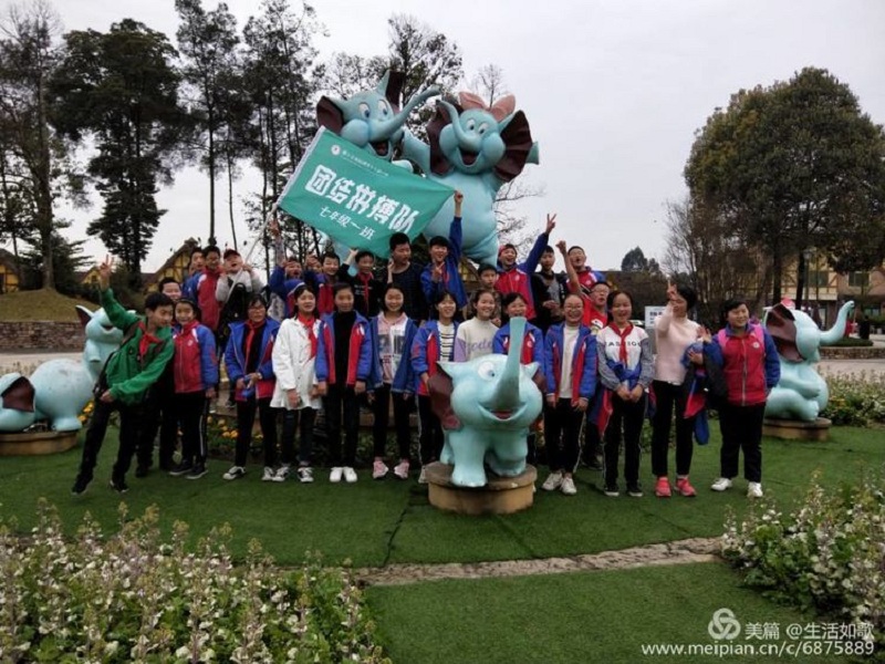 沿途大家在欣赏烂漫春景时,看见白色垃圾,并随手捡起来丢进垃圾袋。我们沿着石象湖的一条路边,一边拍照,一边追逐打闹。来到石象湖新大门,我们看见了几头蓝色的大象雕塑,我们站在雕塑的前面摆各种各样的pose,开始合影,只听"咔擦"一声,我们七一班的同学们全在相机里了。回来的路上,我们三个女同学和几个男同学觉得好累,但是又想快点到学校,于是大家互帮互助,相互鼓励,帮助背书包,时不时小跑起来,感觉有点像跑马拉松的样子,我们跑到车站在那里休息,等待后面的同学,第一次跑这么远的路,虽然累,但是我也感到很快乐。