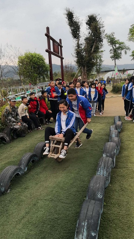 春天来了,万物复苏,迎来了我们初中的第一次外出春游,非常难得。这些年学校把安全抓得特别紧,从来没有组织我们到外地去春游过,最多就组织全校同学在本地一块儿出门远足,所以我们都欣喜若狂,只恨不得马上就出发。 终于到了出游的一天了,我们早早地吃完早餐,7:20我们准时从学校出发了。一路上,我们说说笑笑,有的同学欣赏风景,有的玩游戏,有的听音乐,有的在车上嘻嘻哈哈,个个都是快乐无比。车行两个小时左右,终于来到目的地,迎接我们的是一位身穿草绿色部队服的教官,带着我们到很多有趣的地方游玩。