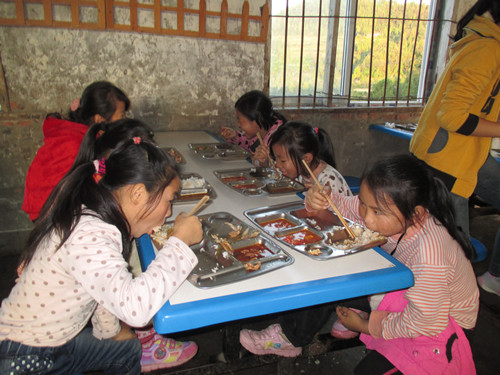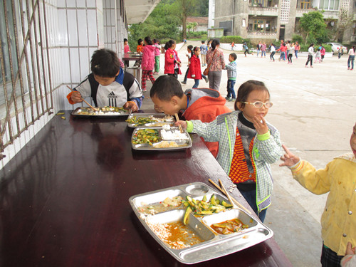 一阵狂啸之后,食堂又渐渐恢复了平静,饭菜是打着了,可问题是我做哪儿呢?由于,我校今年新建食堂,原来的旧食堂拆了,现在搭建的是临时食堂,只能容纳200余人同时就餐,所以座位就成了一个大问题。咋办啦,总不能站着吃饭吧,那多不雅观啊!于是我灵机一动,何不端到教室去吃(我们教室就靠近食堂),哈哈,你还别说,在教室吃饭,也别有番风味。