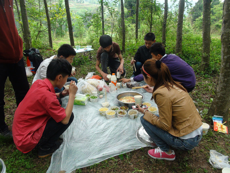 饭后大家便是自由活动,直到下午四点多,便又开始做晚饭,晚上我们和另一个组并在一起烫火锅。大约六点了,才依依不舍地离开圆山子。