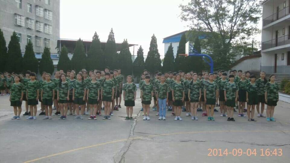 我刚走进教室,,刘校长就叫我们上操场上集合,我看见后面跟着五位教官,他们看起来非常的严肃,他们的眼神,就像锋利的刺刀一样,校长这了简短的讲话之后,就是教官自我介绍,然后是分配任务,我们的那位教官他姓何,他个子微矮,稍微显胖,人们都管他叫"魔鬼教官",他看起来确实很凶,分配好任务,他下来了,我们没有站军姿,他说给我站好啊,不站好给我小心点,他那种表情,看着都很害怕,难道又是一个厉害的教官,我们悄悄在后面议论着。大会结束了,何教官叫我们一分钟回到教室里去,我们飞快的跑啊,教官也从后面跟上来了,走进了教室,他叫班长去拿衣服,两分钟时间完成任务。何教官坐在教室里,在这两分钟的时间里给我们讲解军训的要求,他刚讲完,衣服就拿回来了,一人一套,我们上寝室换衣服,换好衣服就排队准备放学,通食生站一排,住校生站一排,全都穿的迷彩服,看上去挺威风的。