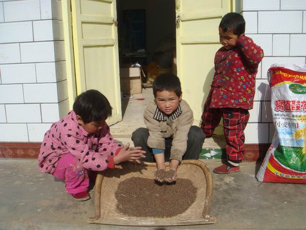油菜子经过长时间的生长,结果实,现在拿在妹妹和弟弟手中的油菜子,终于要让我们收获希望了。看着这些油菜子,我们心情格外的高兴。因为有了它,我们在集市上就不用买食用油了,自己可以省下来很多的钱