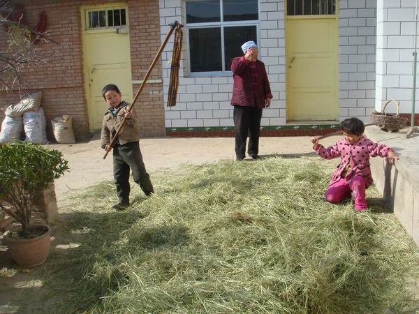晒了一地的油菜子,弟弟和妹妹并不害怕,瞧!他们干了起来。妈妈看见他们俩个劳动的样子,会心的笑了起来。那劳动工具打起来特别的适用,你看高高的打向油菜子,不一会儿油菜杆下面满是金灿灿的油菜籽。