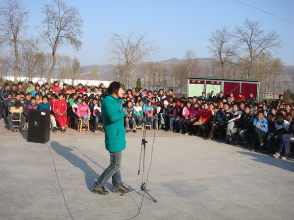 全校学生围成一个圆圈,圆心是参赛选手的表演场地,学校对这次的活动非常重视,学校所有的老师也在表演场地,为参赛的学生出谋划策。可以说这是一个难得的机会。