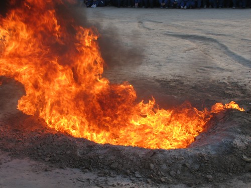 油迅速燃烧起来,火势很大,浓烟滚滚,站在几十米外的我们,都能感觉到火的热量,虽然天气已经很冷了。