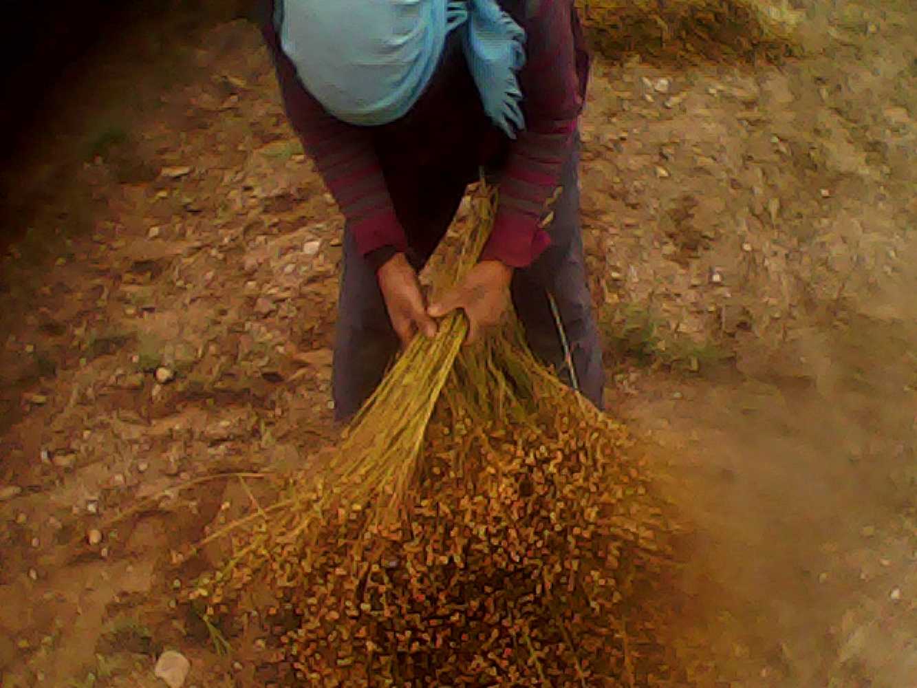 吃过早饭后,我随着外婆和舅舅来到了胡麻地。到了地里,奶奶看到一片黄腾腾的胡麻地,脸上露出了笑容。我看到奶奶的笑容后心里美滋滋的。