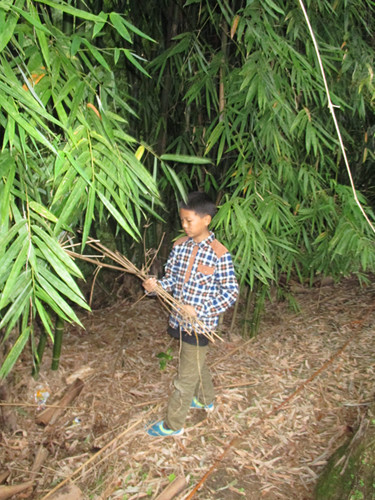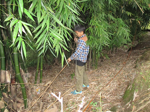 今天家里没柴烧了,奶奶叫我和弟弟去山坡上捡柴。我和弟弟背着背篼来到我家屋后山坡上准备捡柴,落叶满地,可我们却无从下手。