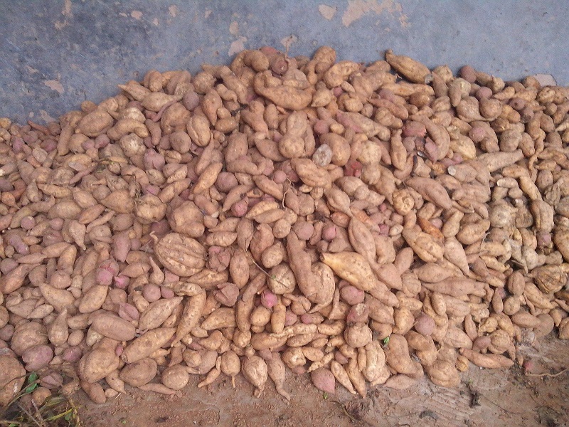 进入冬天之际,红苕也就成熟了。人们将弄干净的红苕背回家,倒在屋旁搁上几天,等到红苕被吹干,表面不再带水分时,就开始将大而光滑的红薯窖在地窖中,一直保存到来年春天。一般农民家里,从田里挖回的红苕一是用来食用,二则将小而不完整的红苕剁成块做猪食。而地窖就相当于一个储物柜。
