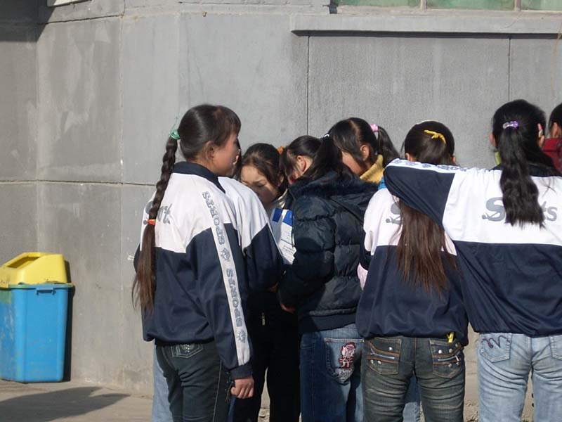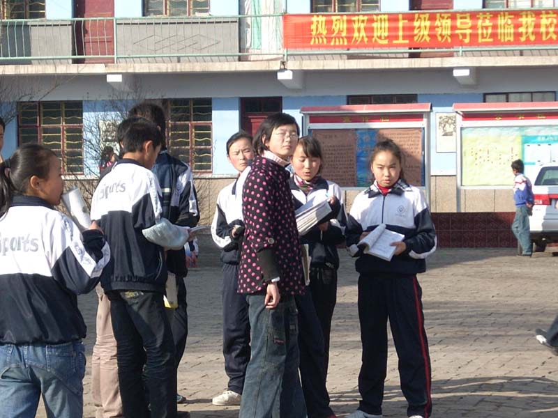 瞧,在这十分钟时间里各个班的同学聚集在一起开始他们的拉家常了。一位同学说:"今天我们的老师讲的知识太难了,我一点都理解不了"另一位同学接着说:"不难呀,挺简单的。可以说地球人都知道,你也不笨呀,怎么不理解呢?"此时热闹起来了,"我看见你在上课的时候就没有好好听课,你趴在桌上写东西,些什么呀!告诉我们","我没写什么呀!"......