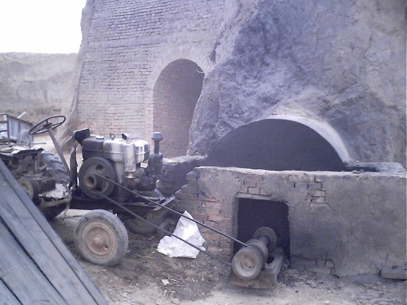 在我们这黄土高原上,你说什么资源最丰富,当然是黄土了,当地的农民看到了这一点,充分利用这种天然资源来造砖,所以我们这里分布着许多大大小小的砖瓦窑。砖瓦窑呈长方形,一般长30米,宽10米,高2米,这样的规模可以装3、4万砖。两边开了许多小门洞,向窑内装砖以及将烧好的砖运出来,就是经过这里。