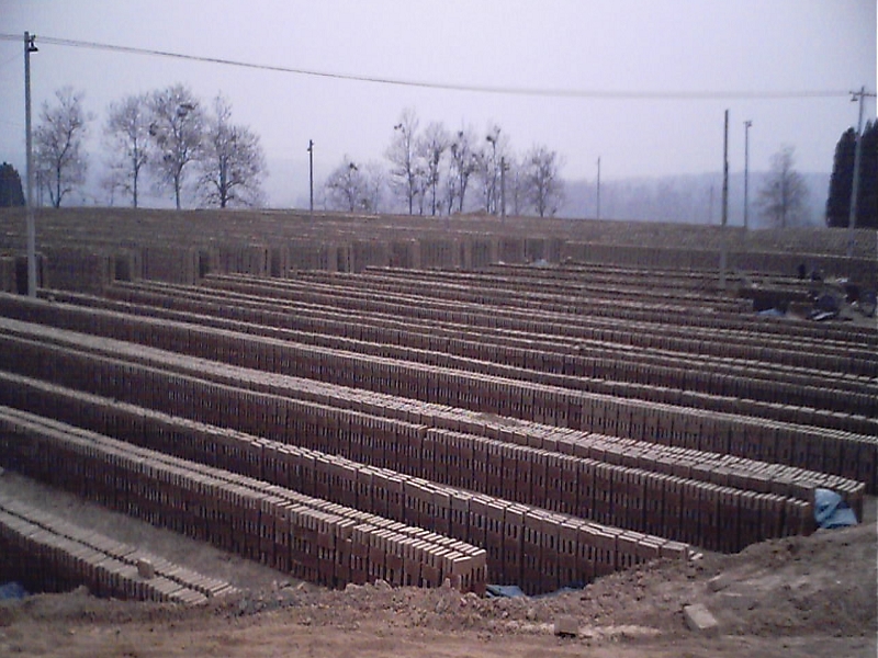 造好的砖坯被整齐的排放起来,必须晒干后才能装窑,这么多的砖坯,遇到下雨天,人就要忙活开了,用草垛子或塑料盖好,否则被大雨一淋,又前功尽弃了。一般砖厂是很大的,又好几十亩地呢!