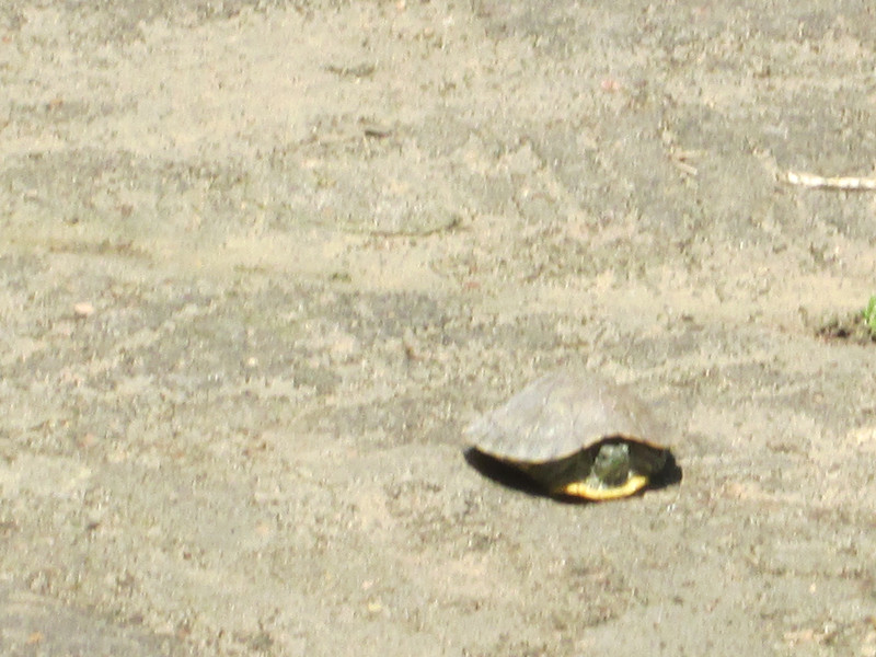有一次我正在写作业。突然听到了"嚓嚓"的响声,一低头看到原来爬出了盆里,在屋子里来回"溜达"呢!我赶紧让小乌龟回盆里去。不知道是它听懂了我的话还是觉得这屋子里没有什么稀奇的玩意儿。