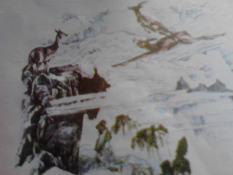 瞧,那一幕幕扣人心弦的场景,那一次次的坠入悬涯,那一个个成功飞渡的羚羊,都无疑是令人震憾的。一切都结束了,一切都沉寂了,只留下那一头斑羚在那,它是谁?它就是镰刀头羊,它甘愿微笑走向彩虹,也不愿成为猎人的盘中餐。