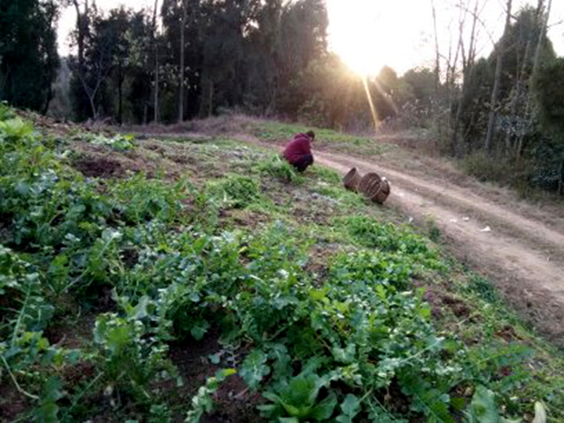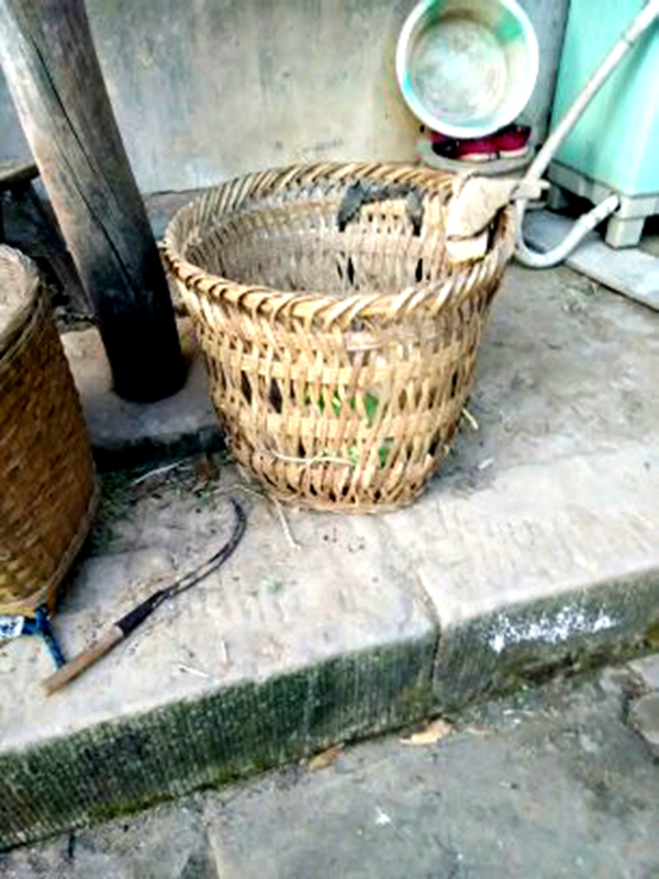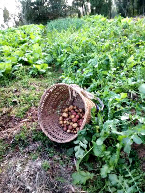 我家的土豆丰收日到了,我提早就准备好了用具——背篓和镰刀,准备和妈妈一起到地里收土豆。