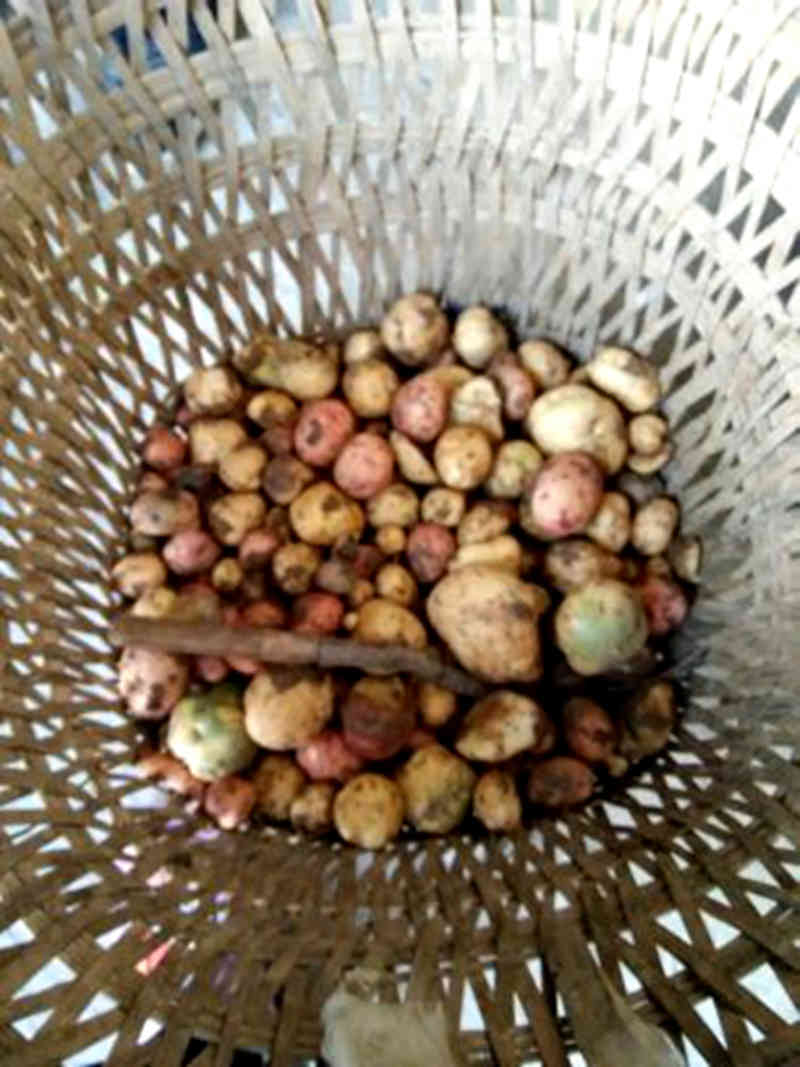 我试着按照妈妈说的去做,果不其然省力许多,速度也快了不少。我和妈妈一块不停地刨,一会儿就收获了不少土豆,看着背篓里黄灿灿的土豆,心想:这真是一个土豆丰收日啊!