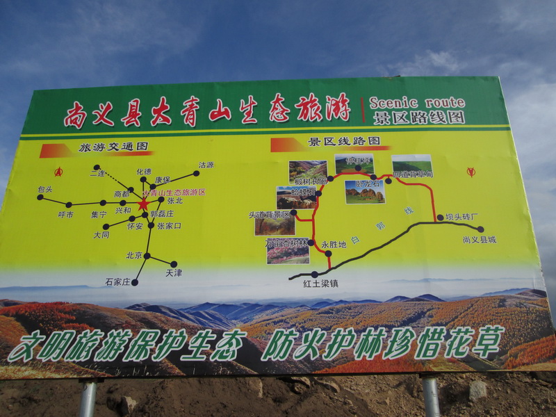 大青山,位于河北省尚义县和内蒙古兴和县交界处,远眺色青,故名。大青山属阴山余脉,面积50平方公里,海拔1919米。山势蜿蜒飞绝,为坝上地区所少见。山阴有鸳鸯河,由东向西,归入洋河。