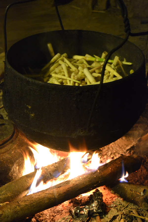 竹笋采下来一部分鲜笋被运到集市上出售,而大部分竹笋被制成笋干,制笋干必须对剥壳的竹笋进行蒸煮。山民们制笋仍然使用自家老式的铁罐,用柴火蒸煮,味道特别鲜美。
