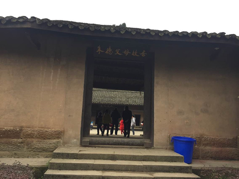 沿着一条林荫小道拾级而上,大约经过二十分钟便来到了一座旧式川东民居旁边,走进院子便看到门前赫然写着"朱德故居"四个字。里边摆放着朱德当年学习生活劳动用的家具,显得十分陈旧,由此足见,朱德总司令小时候家里是多么穷困啊!来到朱德的房间,里边还完好的陈列着总司令当年在家读书时用的桌子、桐油灯盏和椅子。朱老总当年生活那么艰苦却为新中国做出了卓越的贡献,我们今天生活条件那么优越,不好好学习简直对不起革命前辈呀!