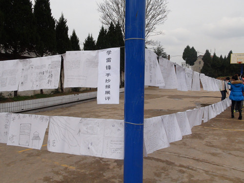 开学典礼上,学校德育主任安排了学雷锋系列活动事宜。还展出了全校二百多位同学精心办的手抄报。