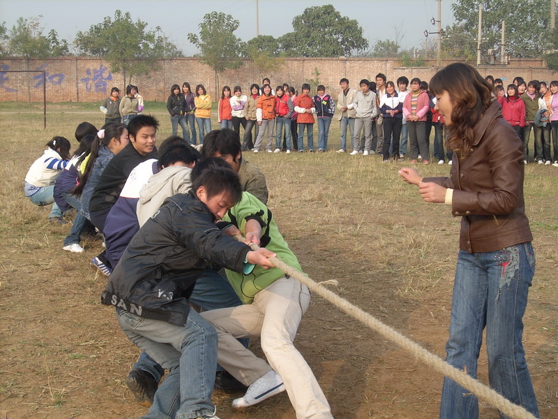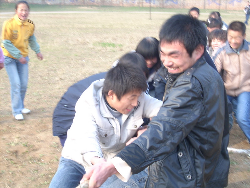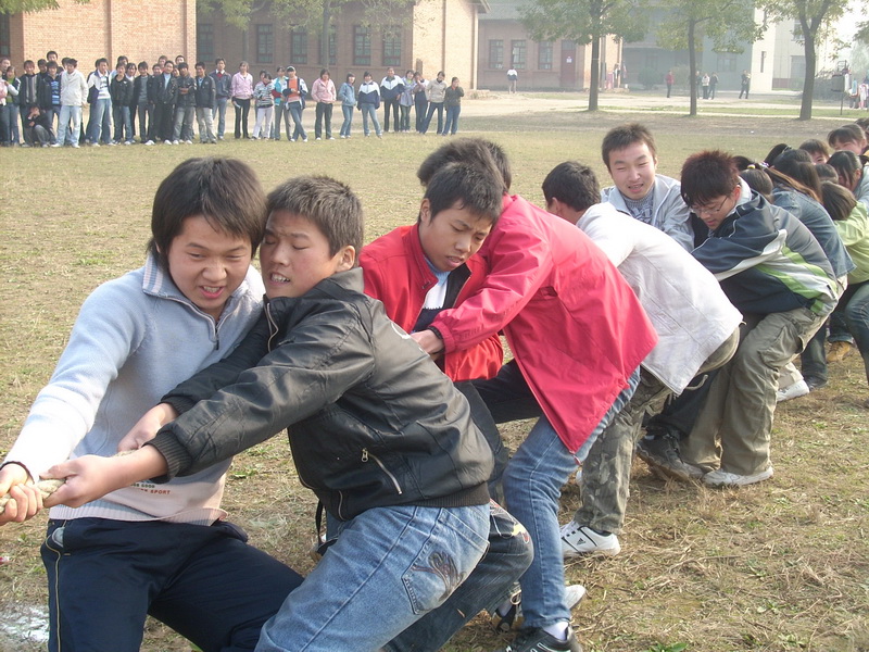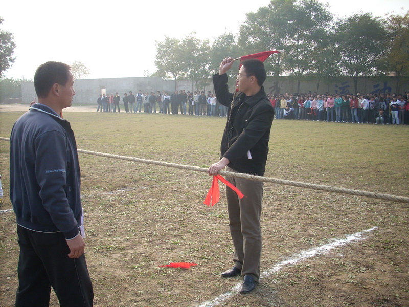 “加油,加油”一声高过一声的喊声拉开了正式比赛的序幕,这是我校政教处和体育组联合组织的拔河比赛。