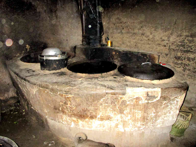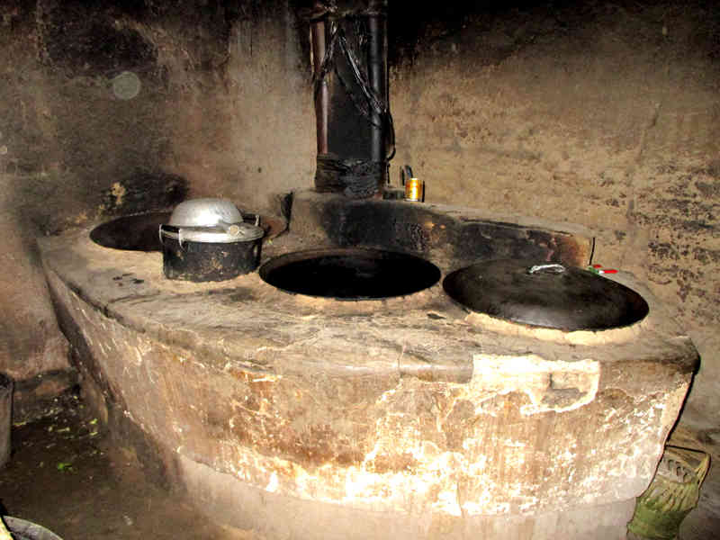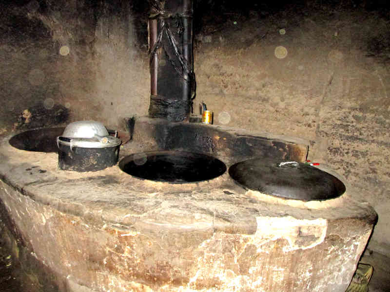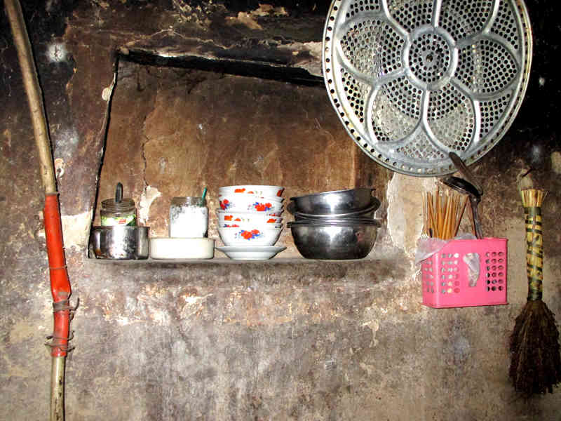 石案板上边的墙上,有一个壁橱。别小看这不起眼的壁橱,它的作用可大啦,炒菜用的盐、调料放在这上边,取用非常方便。洗好的碗、盆子等也可放在上面,为它们提供了一个清洁的庇护所,使整个厨房显得整洁了许多。