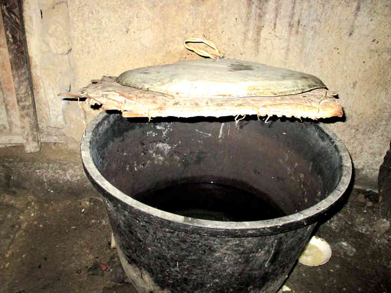 案板的旁边还放了一个塑料水缸。本来之前,我家用的是一个用石头凿成的水缸,大气稳重,环保耐用,不知是什么原因爸爸把它换成了现在这个塑料水缸,这个水缸很能装,我家的日常生活用水全在这里面,装满之后够用个四五天的。