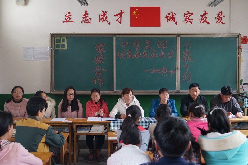 3月26日下午,蔡玉窑中学在九年级教室隆重举行中考复课冲刺宣誓动员暨家长会,学校班子和九年级全体师生、家长参加了会议。