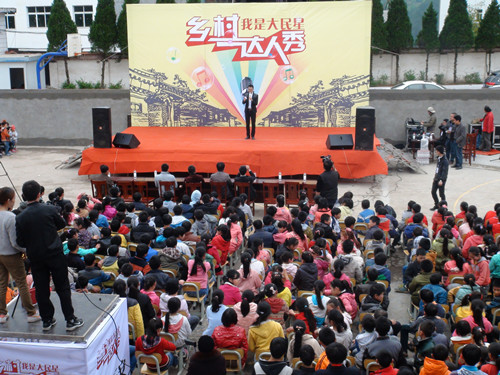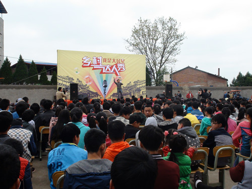 4月8日一大早,电视台的工作人员便搭好了舞台,音响师忙着调试音响。不久,操场上便陆陆续续地汇聚了不少的民众。有踊跃前来报名登台表演的,有专程赶来为亲友呐喊助阵的,更多的是来观看选秀节目的。