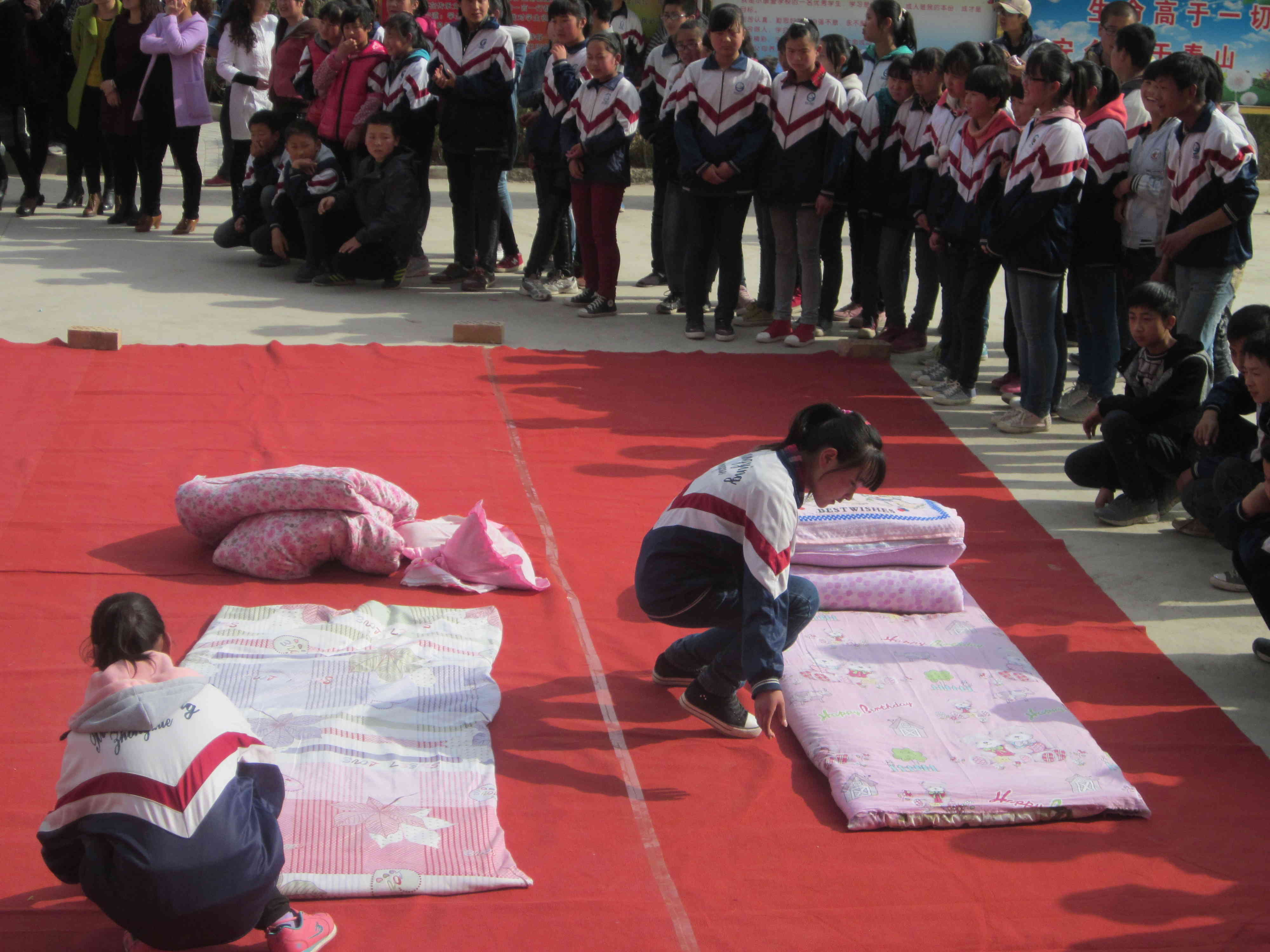 到我参加比赛了,可是被子一点也不听话,要不就是不对称;要不就是不平整;要不就是斜在一边;要不就是塌塌的;什么方方正正,像快豆腐,简直就想豆腐花一样。我不由的说道:"看看好简单,做起来怎么这么难呀!"这时听到同伴的加油声,我仔细想了想,重新按照宿管的作法,一步一步,终于把被子叠好了,看到我完成的很好,同学们也向我投来赞许的目光。