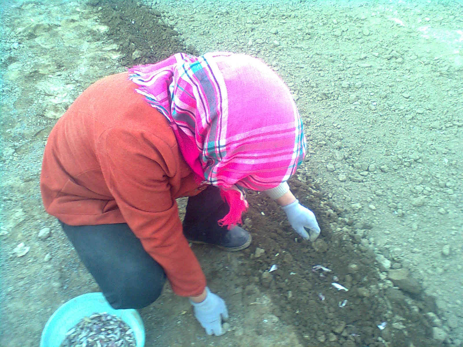 初春时节,妈妈把洁白的蒜瓣栽种在肥沃的土地里,盼望着小蒜瓣能早日长成大蒜苗。