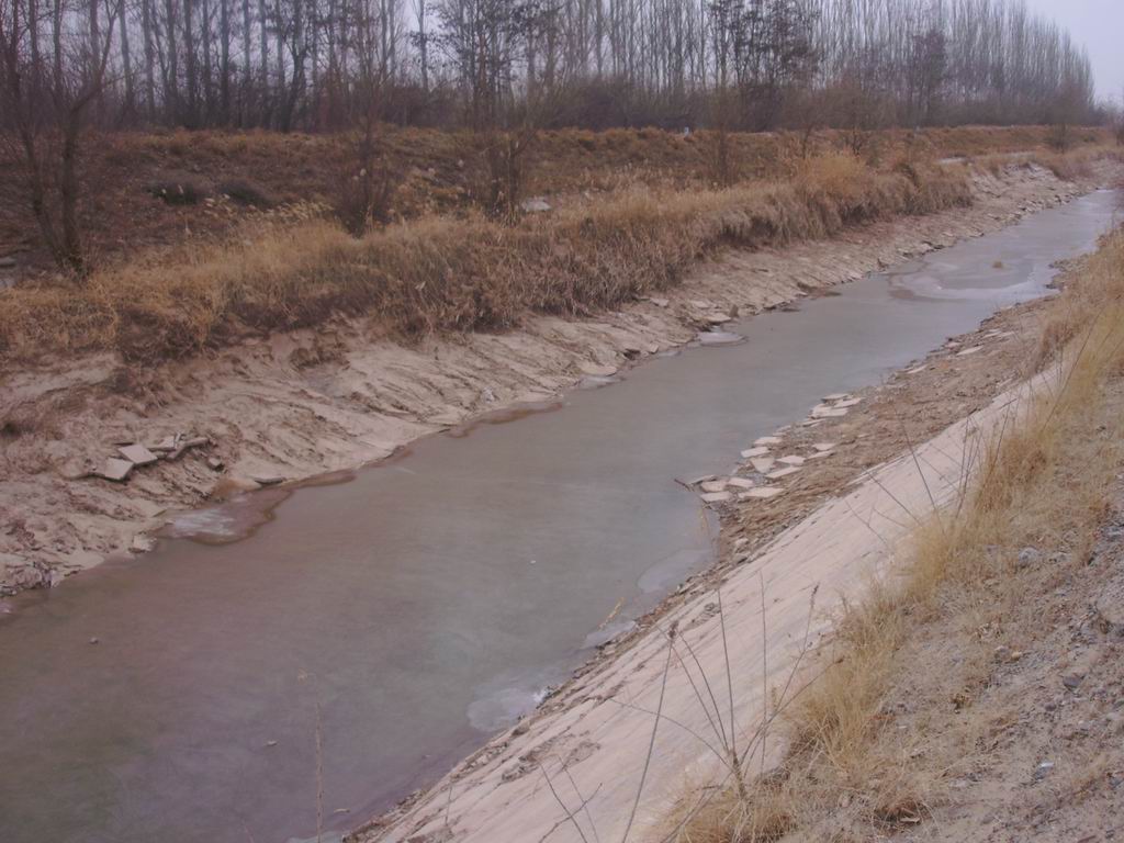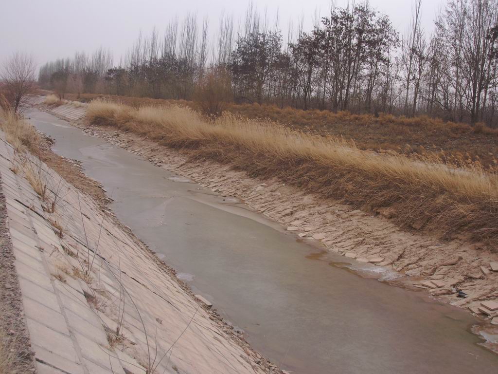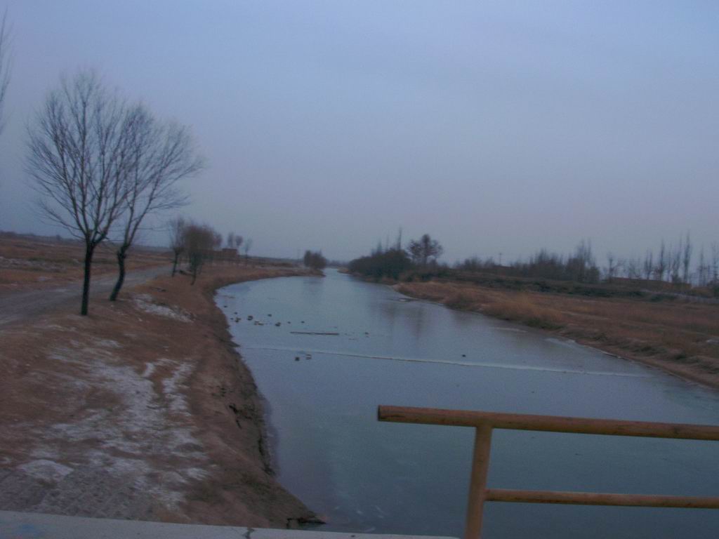 看渠水结冰了,好像一条冰河大道,冰很厚很厚,故乡的冬季是冷的,但人们心中是热的。