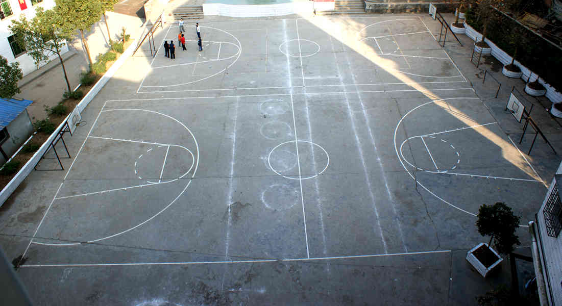 拾阶而上,便到了我们的大操场。这个操场面积很大,规划了两个篮球场还绰绰有余。操场地面进行了硬化,平坦整洁,大家非常喜欢在这里活动、玩耍,课余时间你便常常可以看到同学们龙腾虎跃的身影。"每天锻炼一小时,健康生活一辈子",我们的大操场功不可没。