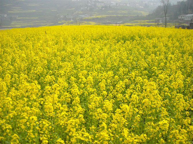 瞧,那大片大片金灿灿的田野,原来是油菜花也来参加新季节的开幕了。春姑娘把她们打扮的那么漂亮、那么诱人、那么引人注意。一切都显得那样张扬、那样神采飞逸、那样生机勃勃。