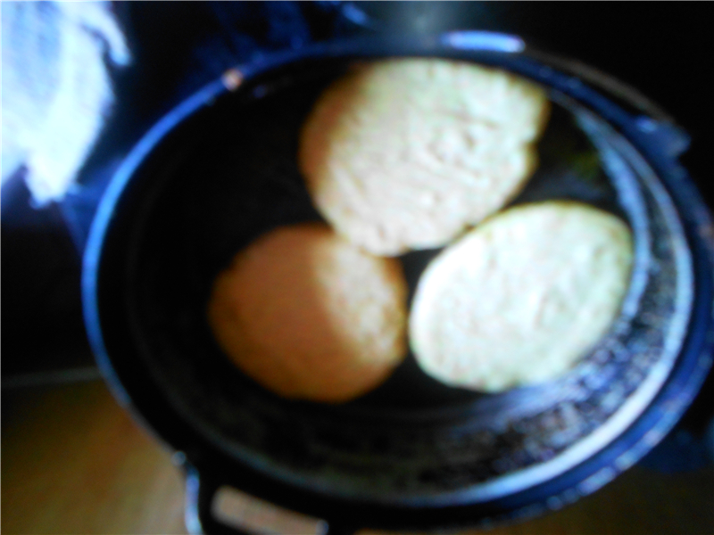 姥姥把醒好的玉米面拿到炉子跟前,开始放佐料,先放了些碾成沫的苦香豆,其次放了少许碱面,最后倒了些生油(也就是清油),放了少许白糖,之后搅拌起来,来回的不停的搅动,直到搅拌均匀为止。这时我放在炉子上的铝锅也已经预热好了,就等姥姥的玉米面下锅了,只见姥姥把玉米面舀进铝锅里,舀了三勺就好了,之后,姥姥盖上盖子说是焖一会,五分钟后,姥姥揭起了盖子,一股热气腾腾的玉米面掺加着苦豆香味扑鼻而来,还没熟,姥姥说着又盖上盖子再让焖一会就好了,我在一旁等候着饼子快点熟。