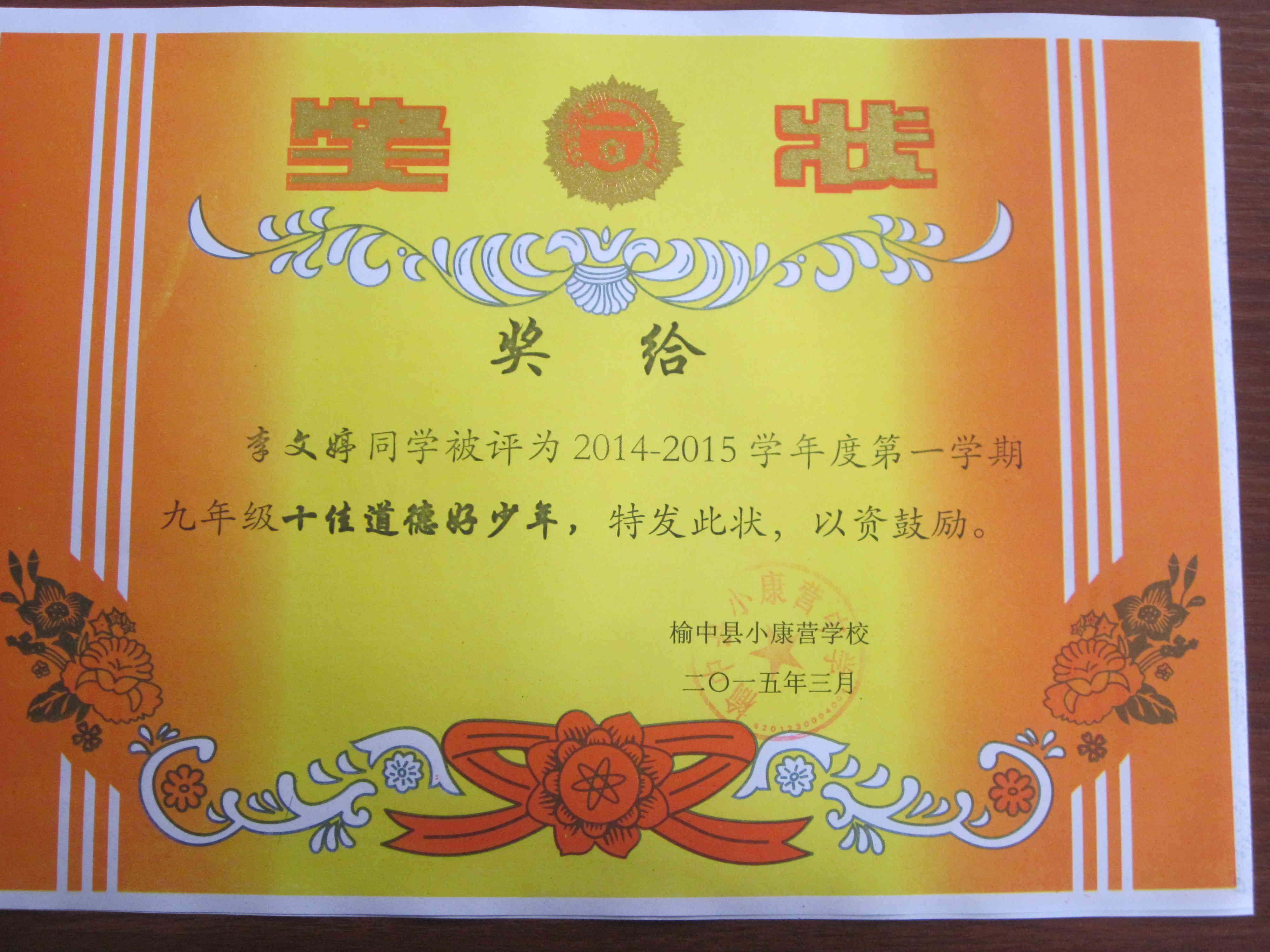 我班李文婷同学获得了"十佳道德好少年"的称号!我们为她感到骄傲和自豪!向十佳好少年学习,加油,继续努力!