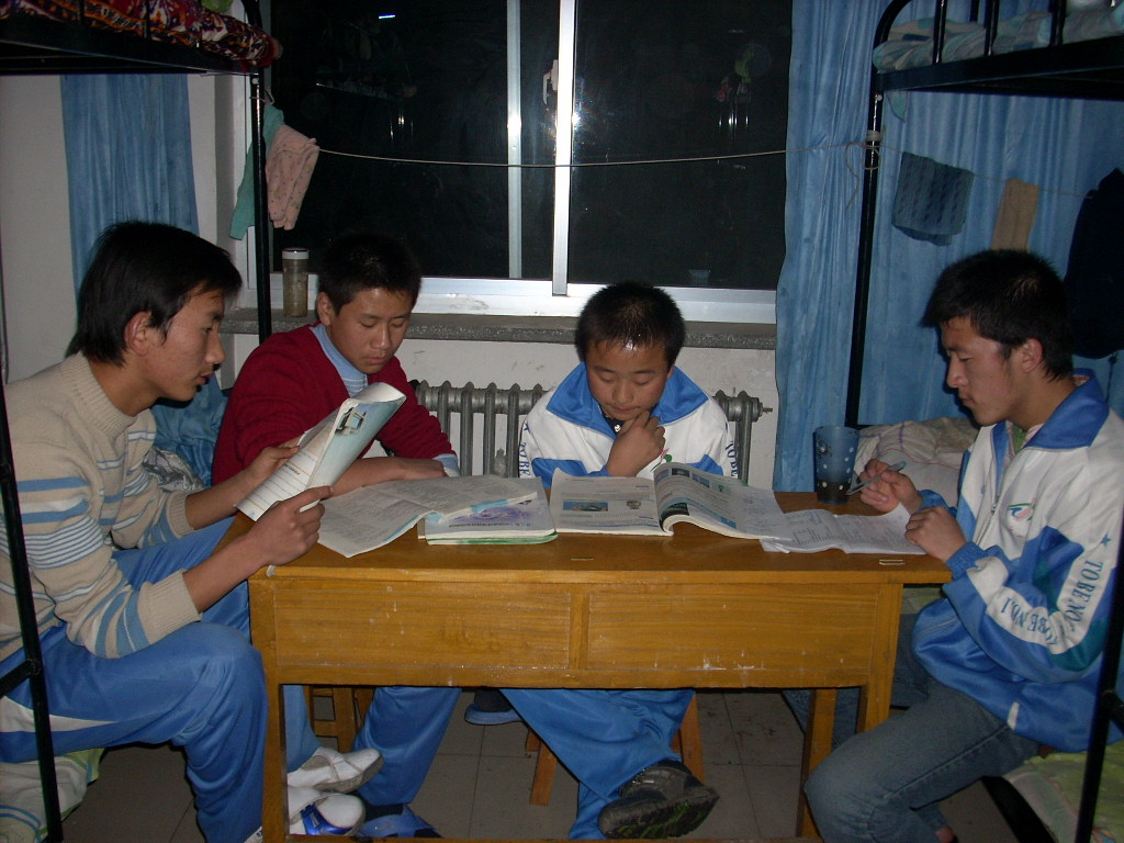 高中的生活是繁忙的,当老师布置的作业过多或过难时,同学们就不得不将作业拿回宿舍,大家讨论完成。有时当遇到特难题时,同学们将争论到深夜才休息。有时就是争论到深夜,也没有眉目,只有放到第二天去问老师。
