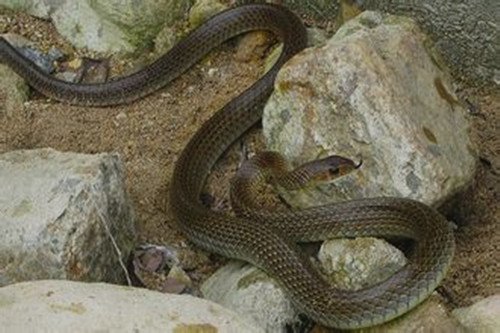 等我找到妈妈再回来时,那蛇已逮住老鼠美美的饱餐了。自此,我知道了蛇是益虫,也不再害怕蛇了。