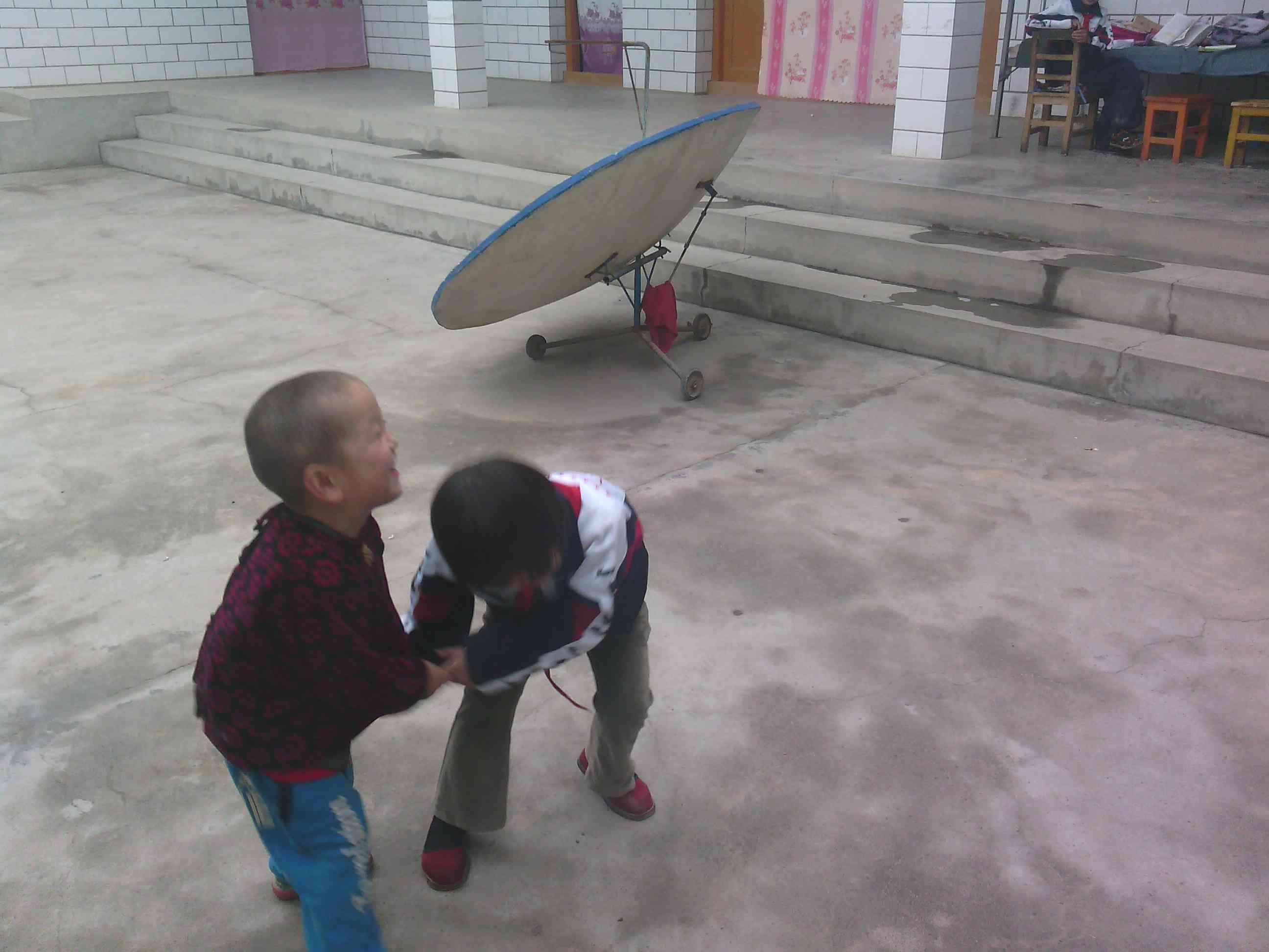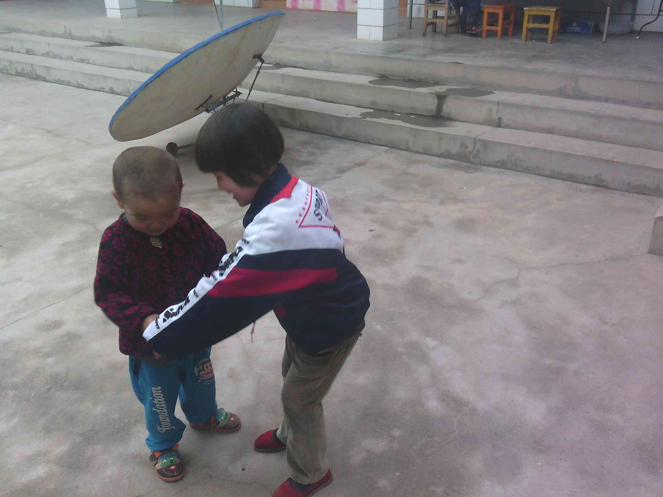 "呜呜,姐姐,哥哥打我"。你看他们又开始战争了。唉……
