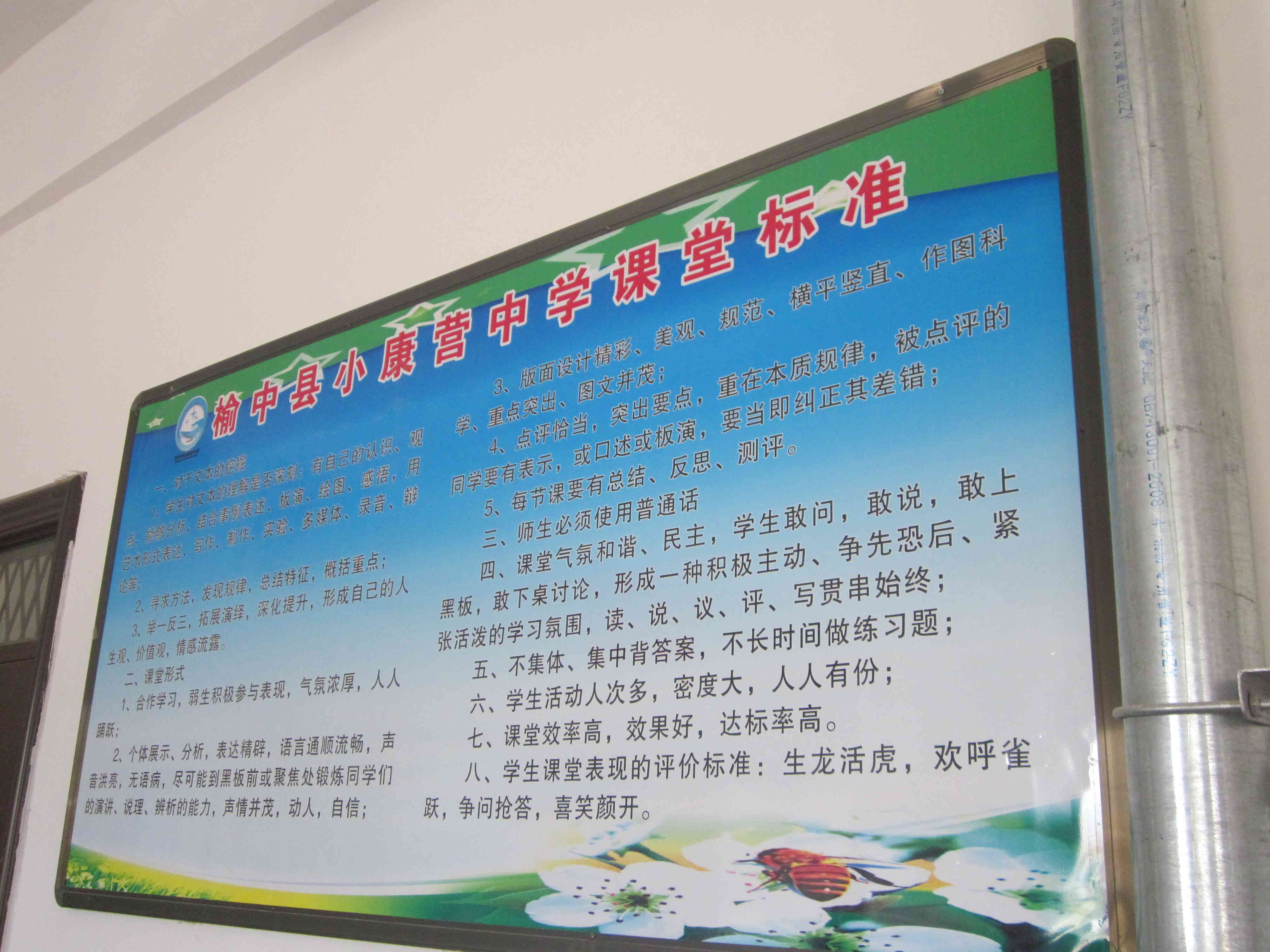 在我们学校每个班的教室里,我们都会看到《榆中县小康营课堂标准》,师生有了标准和依据,可以客观的评价一节课的优缺点。