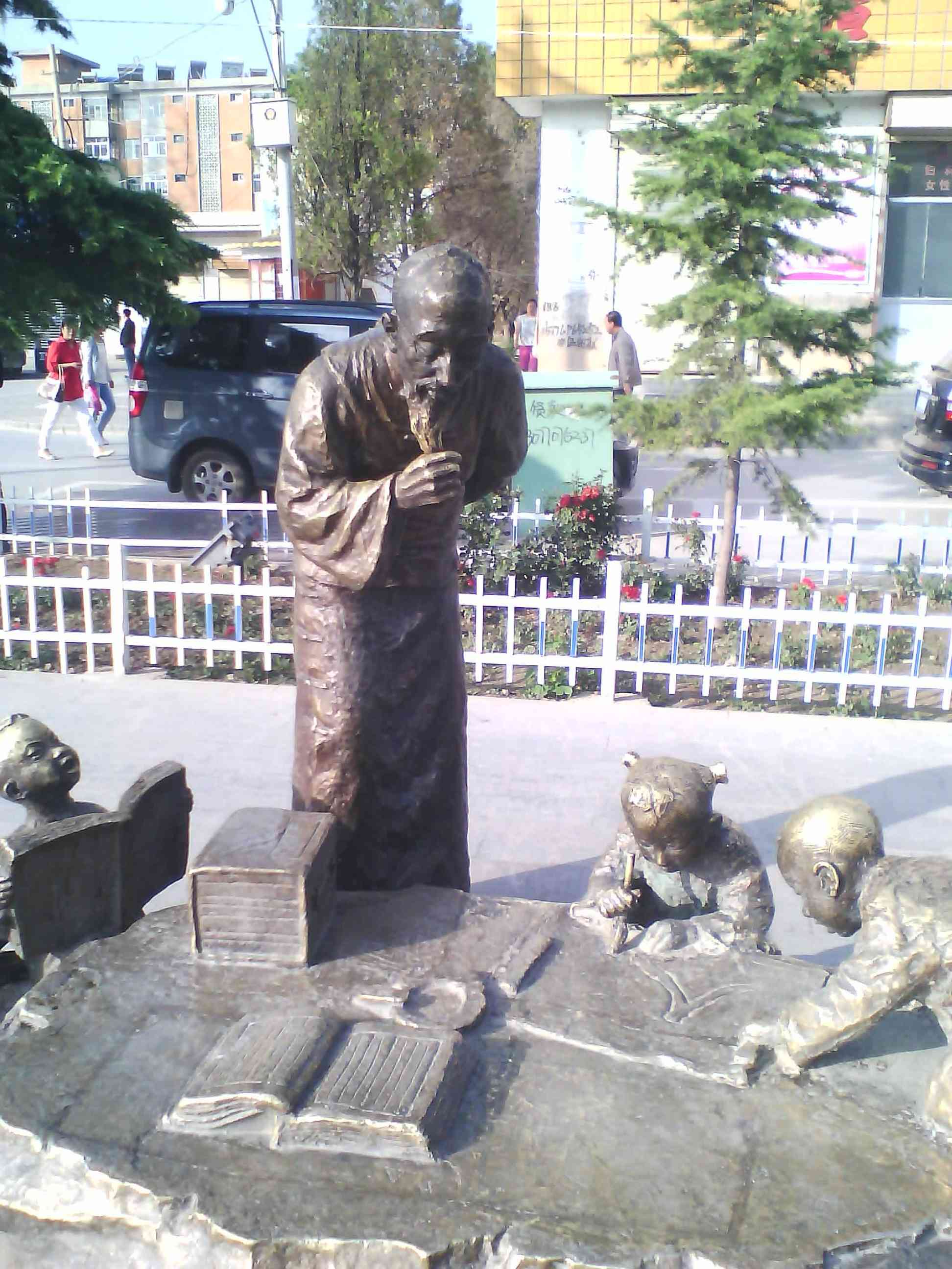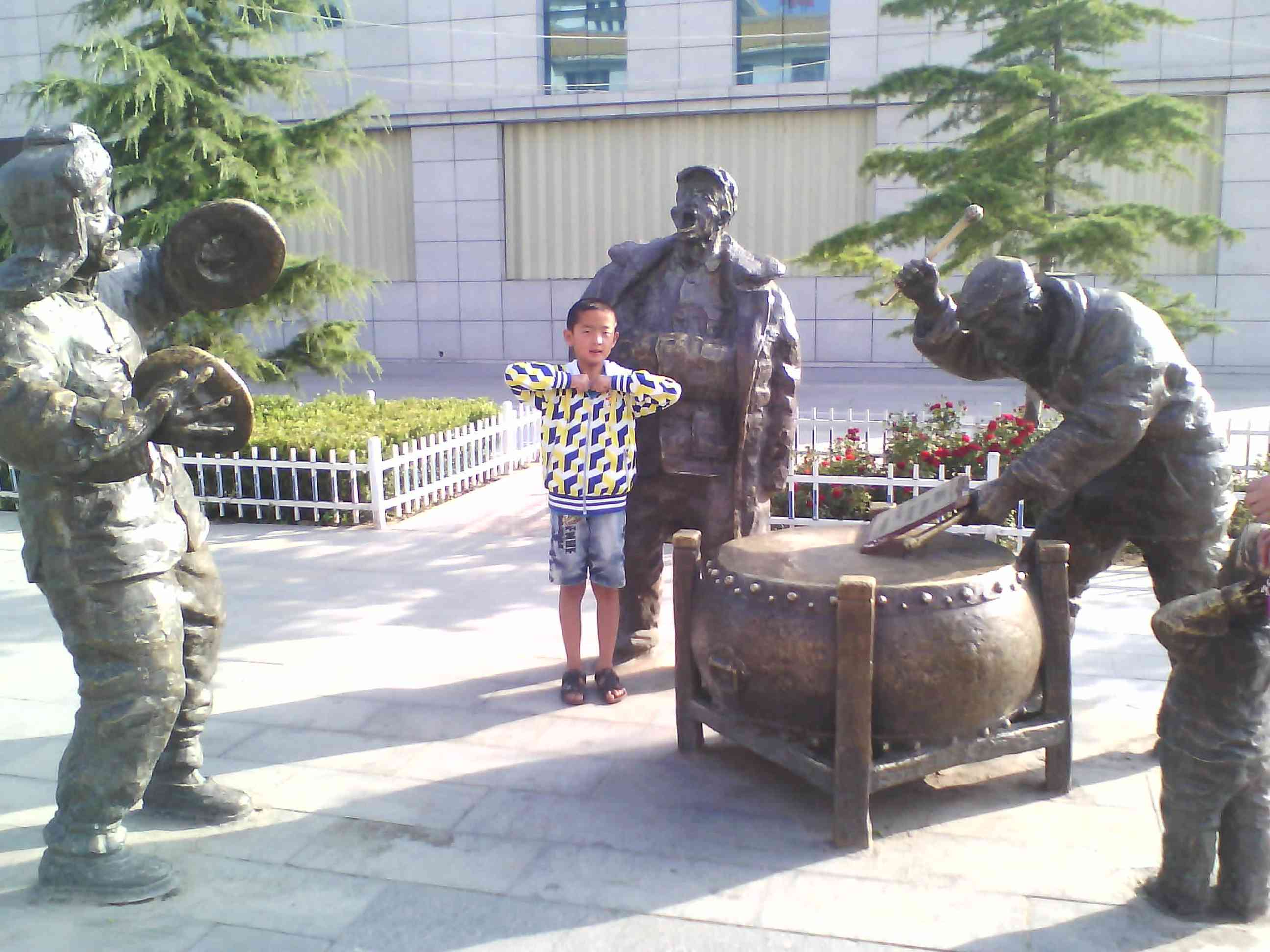 有一个广场,在那就可以看见一些铜器,铜器一共有五组,它们的人物代表各不同,有两组是代表陇西风味小吃的,有一组是代表陇西文艺活动的是打秧歌,还有农历四月初八打云阳板的,教书先生教书的。总之花样百出,尽显陇西文化特色,彰显了地方文化。