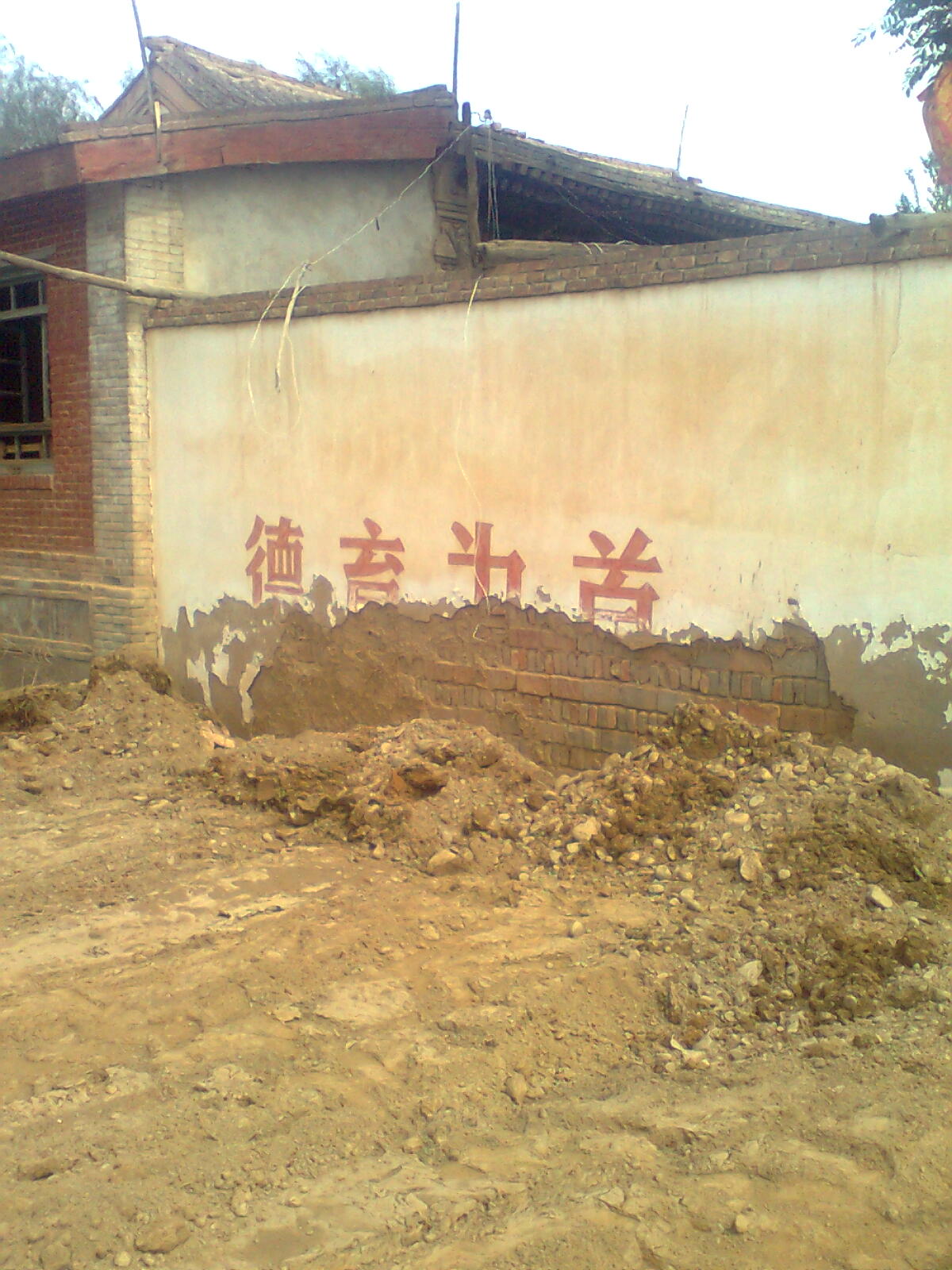来着校门口,首先映入眼帘的是两扇木制的门,木门上面的石灰墙上写着"毛主席万岁"。进入学校,左右两旁有两个十平米的小房子,这是以前的教师办公的地方,左边房门前有一棵柳树,每到夏天时枝叶非常茂密,老人们在树下面下棋,打牌,孩子们在那玩的不亦乐乎。 正前方是一个升旗台,旗杆已经被人拆去了只留升旗台在那,升旗台的两旁则是教室,一共有六间教室,每个教室的门口上面都有一个木头做的小牌子,上面写着几年级几班。还有两个大窗子,黑板还保存着,有一间教室已经塌了。当你走进这个学校时,你就会体会到父辈们那个年代所接受的教育。