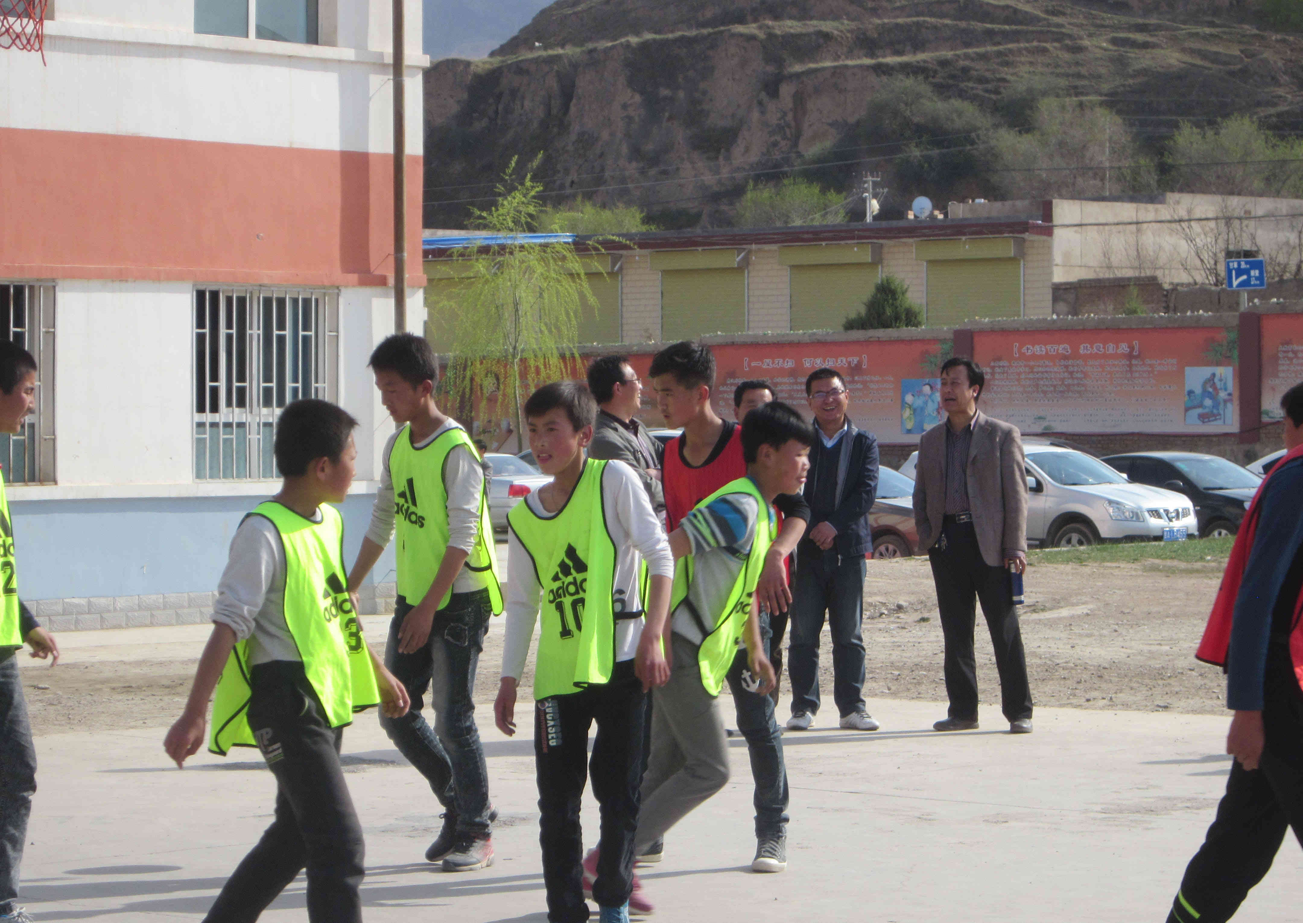 果然不出我所料,在下半场的球赛中,我班那个傻大个马吉强抱着篮球横冲直撞,.这事已是司空见惯。七(3)班刘田涛的投篮技术令人叹服,不就是区区黄河吗?我要来个飞跃篮筐。只是傻大个从中作梗,抢走了篮球这使我班队员信心大增,这不又进了一球?"拥抱式"的防球法也成了球场应用最广、熟练度最高的技术。